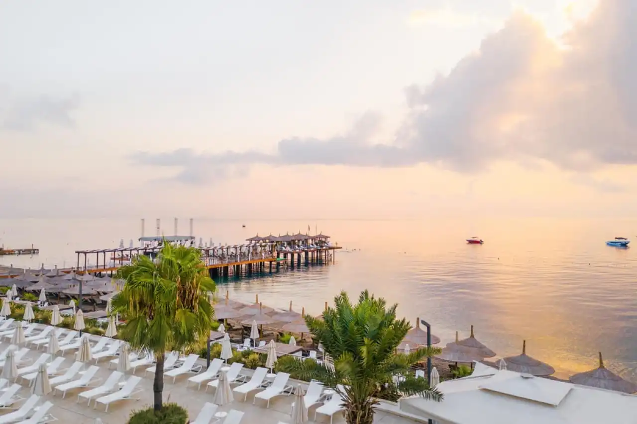 - Özel Plaj: Denize sıfır konumdaki tesisimizin 250 metre uzunluğunda özel kum-çakıl plajı ve iskelesi bulunmaktadır. Plajda duş, şezlong, şemsiye ve havlu ücretsizdir; Cabana kullanımı ise ücretlidir. (Plaj ve iskele açılışı hava şartlarına bağlı olup 20.04.2025'te kullanıma açılacaktır).